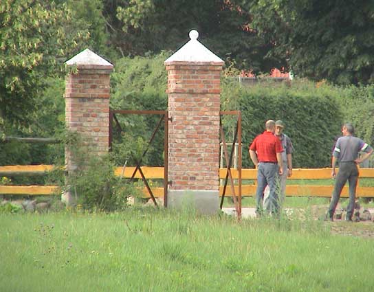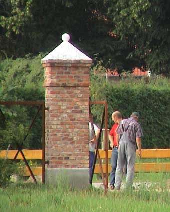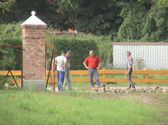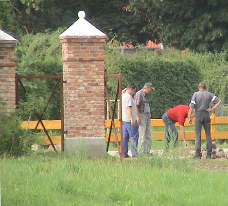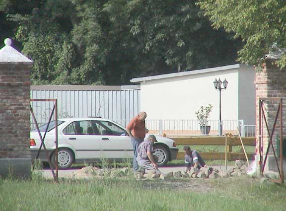 mit denen sie begannen die Einfahrt zum Haus und Hof aufzureissen. Die Steine