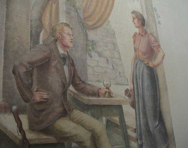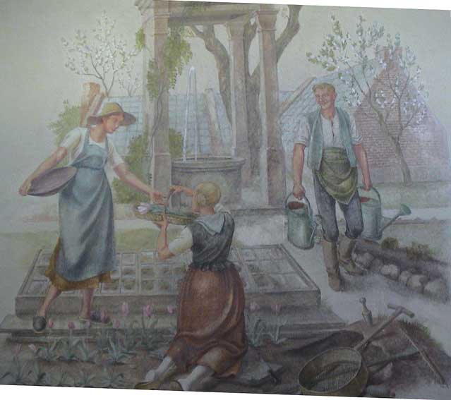 Wandbilder der Cafeteria, heute Bibliothek der Musikhochschule