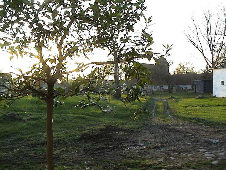 Entfernen des Konsum auf dem Hof, der Garagen links, die Errichtung der Pfeiler
