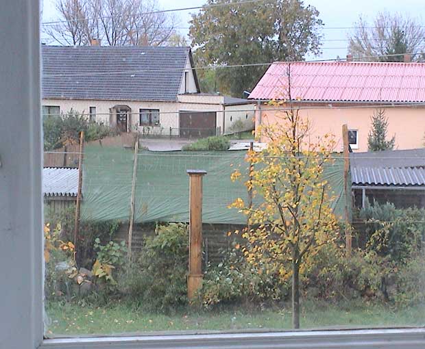 Um das alles zu verstehen. Klagen wegen Nähe und diese künstlich zu schaffen, muss folgensdes gesagt sein dürfen. In der Zwischenzeit nämlich hatte der Neffe der Klägerin nach ordnunggemässer Kündigung als Mitarbeiter hier wegen gewisser unberechtigter Übergriffe und Kündigung seiner DDR Garagen auf dem Hof Rache verkündet in Höhe seiner Forderung um neue(10 000Euro)Garagen (Bild6), und sonst Schaden zuzufügen angedroht. So klagte die Tante wegen Kamerabelästigng, als ich zur Bewachung meiner Dinge(Fenstereinwurf, Pflanzenbeschädigung und Aufruf zur Brandtiftung)an ihrer Grenze dazu leere Gehäuse aufstellte und von meinem Haus berichten wollte, wie es wieder animiert wird. In der darauf folgenden Klage lesen wir von Persönlichkeitsrecht und Leidensdruck und Bedrohung auf der anderen Seite und vom niederen Recht der Kunst hier, bezweifelt überhaupt als Existenz und hier zu sein. Diese eigentliche Ursache aber allen Übels, die Rachedrohung des Neffen und das Pochen auf Bestandrecht der DDR Verhältnisse dürfen nicht genannt werden, wie aber sonst wäre dies alles zu verstehen. Sieht man denn nicht wie hier nicht nur ich gejagt, sondern das Gericht selbst benutzt wird, zu Narren gehalten, wie man den Trick herausgefunden hat mit Formalien, gut versichert oder sonstwie abgesichert, die öffentlichen Organe der westlichen Gesllschaft mit willigen Hefern lächerlich macht und ungestraft verfährt, Schreiben verfasst und vollendete Tatsaceh schafft, worüber die anderen nun ernsthaft grübeln.