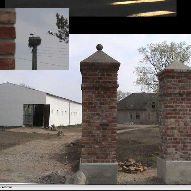 Was links nochst, Taubenschlag und Kutscherhaus und Pferdeställe werden