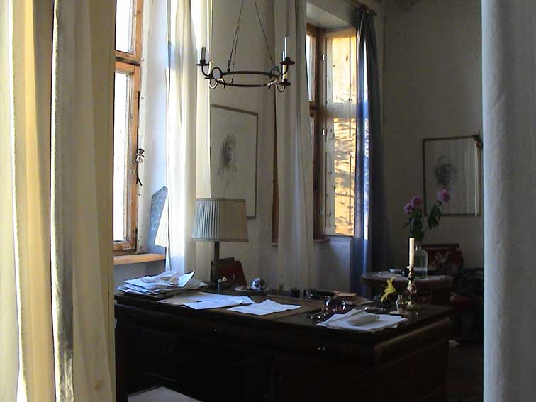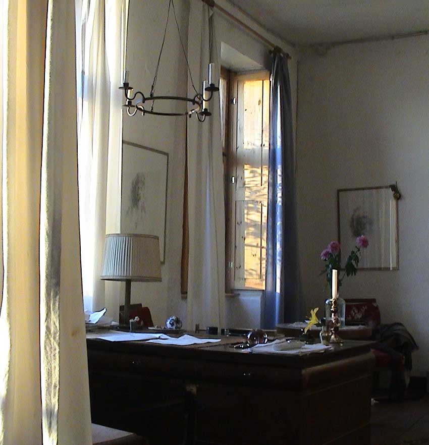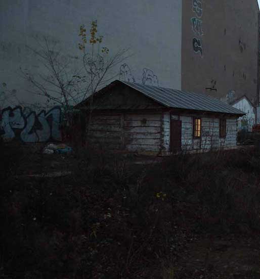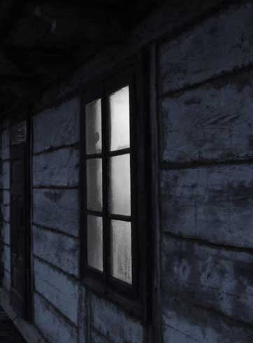 abends aus dem Fenster rettet viel-für den Tag alles. Im elenden Dorf