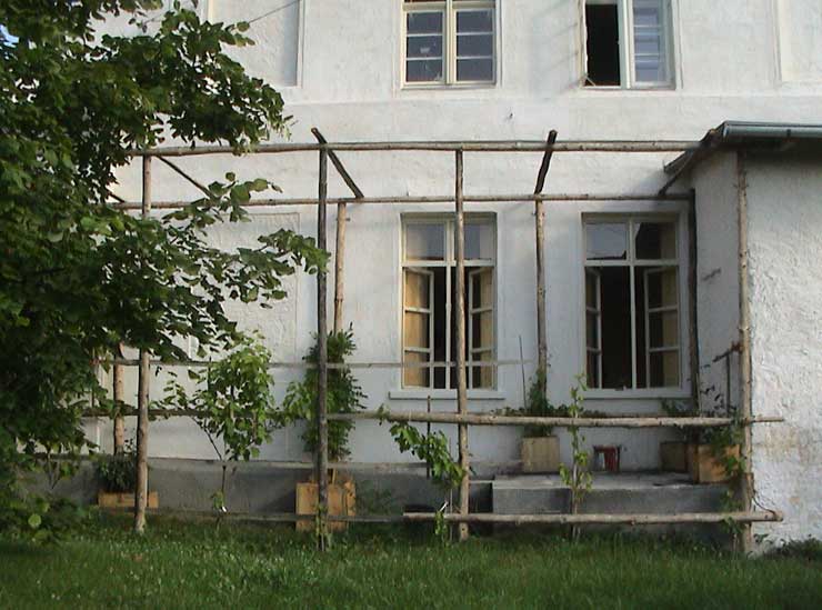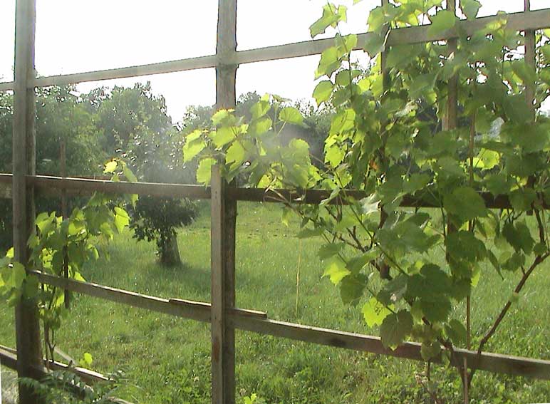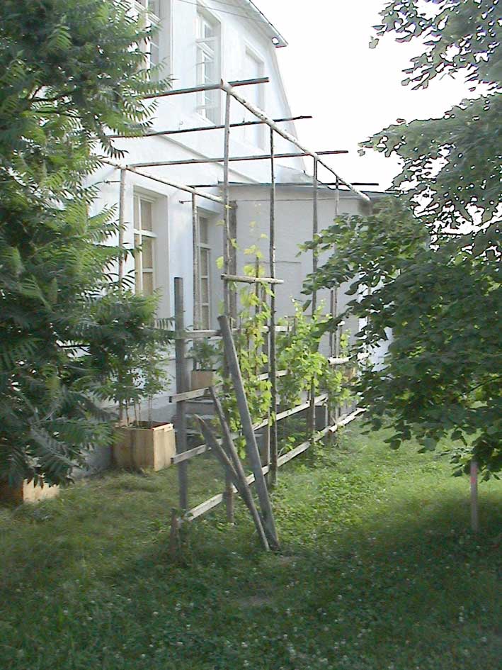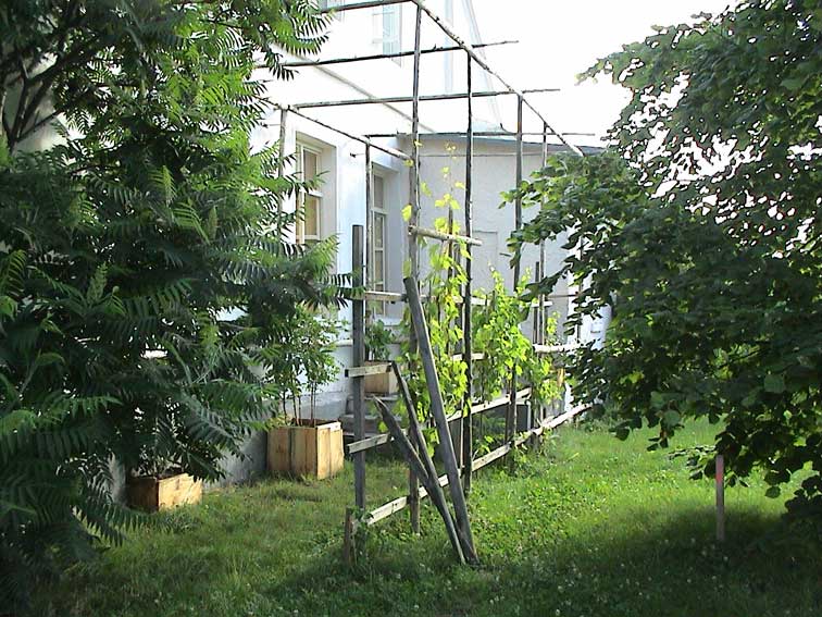 Raum die Kpppelzäune als Spalier vor dem fenster mit Wein, die neue Wand