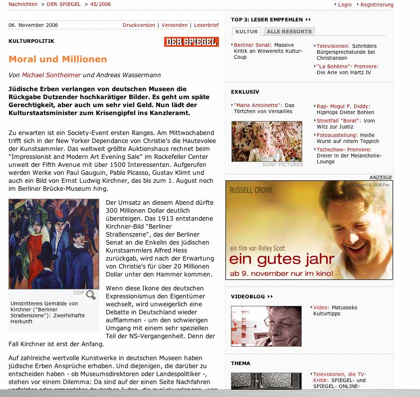Frage: Die Versteigerung des Kirchner-Bildes ist ja kein Einzelfall...