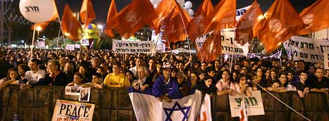 Vor der Menge appellierte der israelische Autor an Premier Ehud Olmert, sich