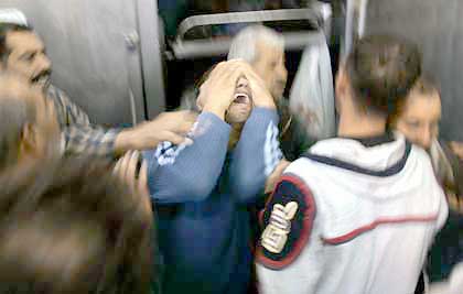 Mitglieder der Familie und schluchzen still vor sich hin. Ein Mann taucht seinen