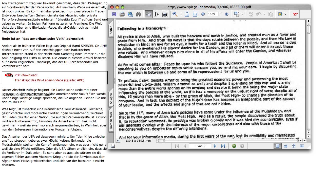 jüngste Video von Bin Laden war im Orig. hier nur erreichbar über
