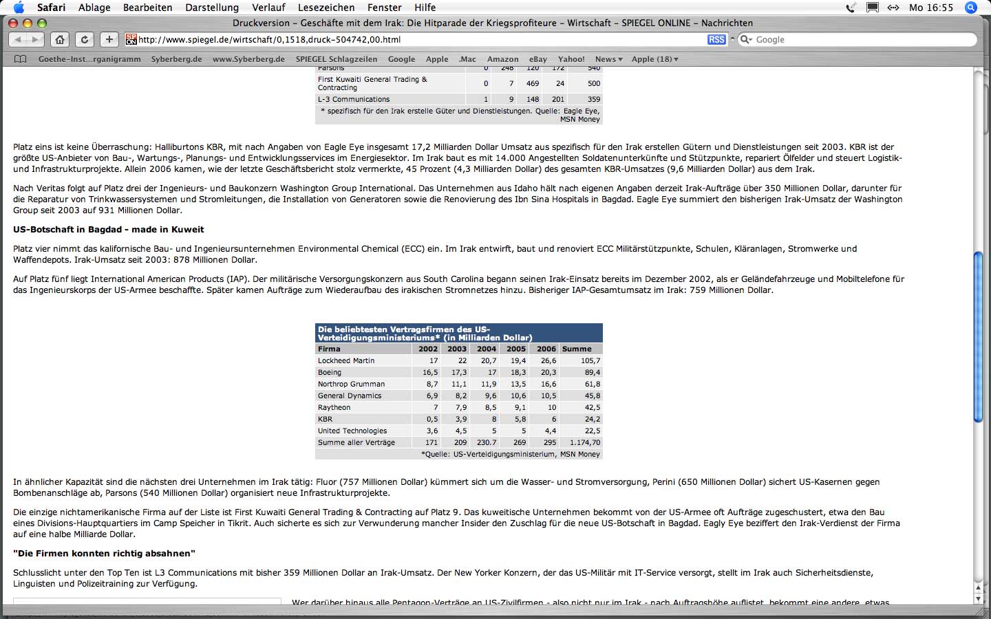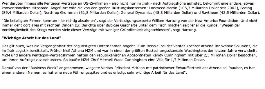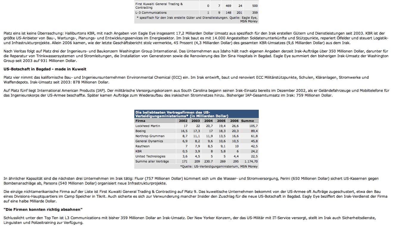 Irak-Kriegsprofiteure. Dort rangiert die Firma mit bisher 1,44 Milliarden