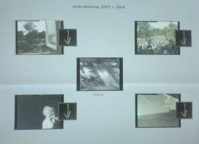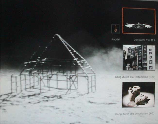 letzte Stationen auf dem Weg der Monolog-Herstellung. Neue Supplimente (dokumentierte Webcams von N. für Paris 2003) anstelle erster Gänge 2003 durch das befreite Haus usw.