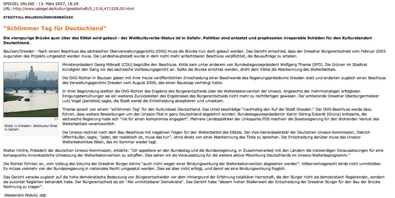 der Dresdner Bürger für den Bau der Brücke Rechnung zu tragen".