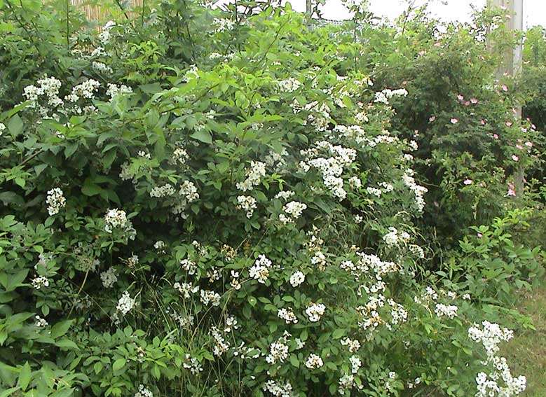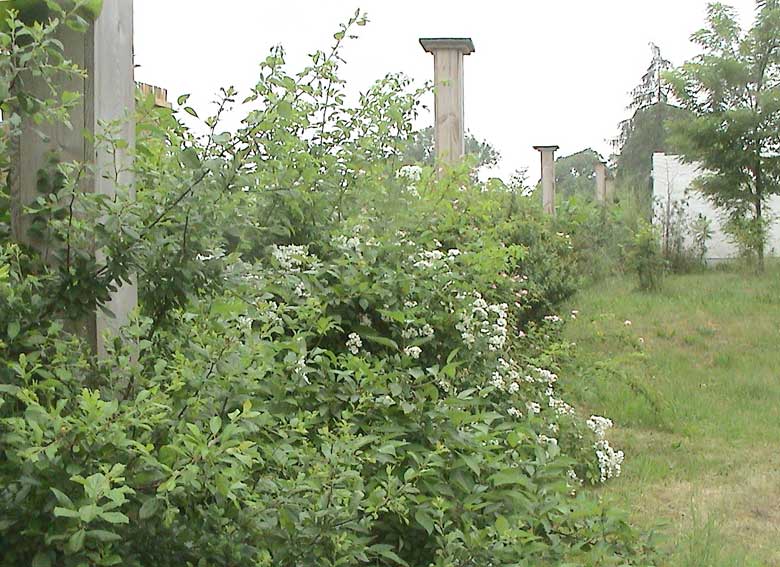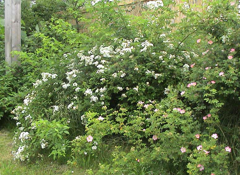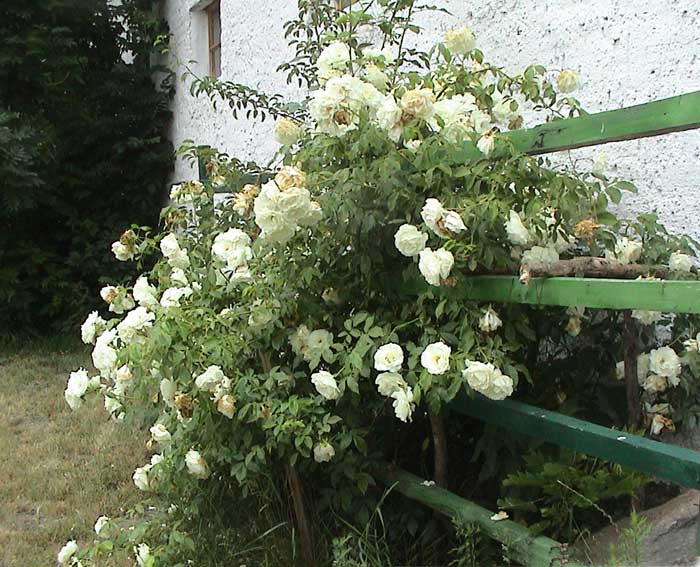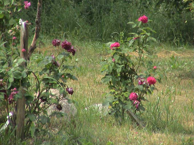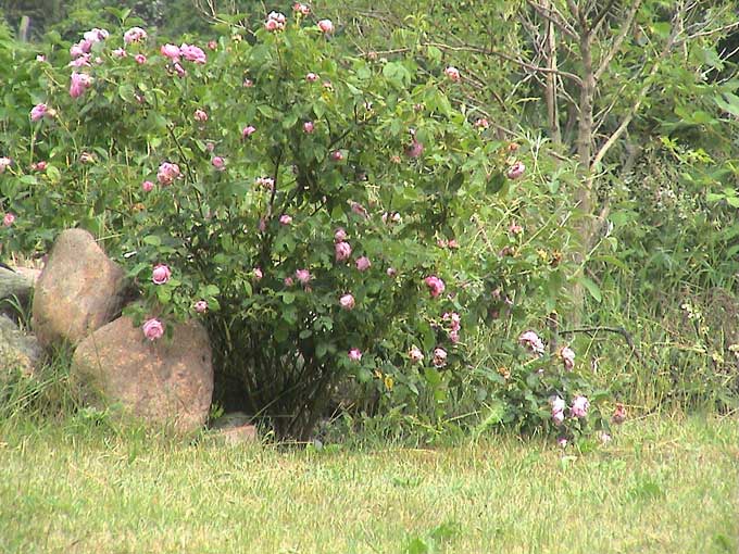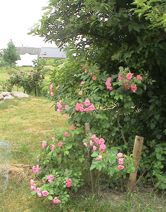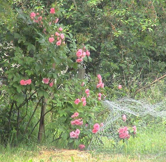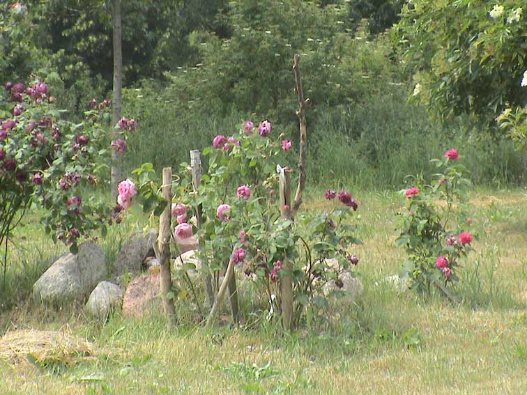 Tag Regen. Noch die Bilder von davor. Rosen als Sträuchergebilde hochgebunden.