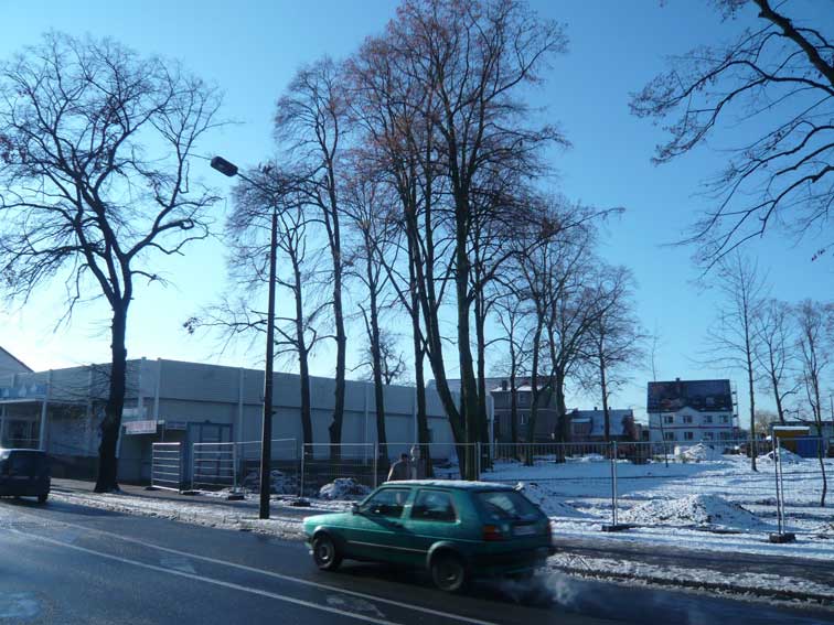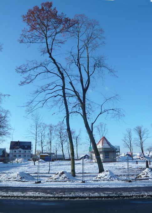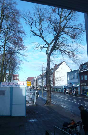 was einmal Bäume waren Linden hochgeschoren ohen Autos, die hindurchmüssen