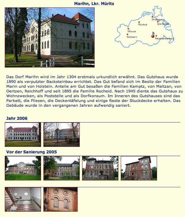 Holstein. Später haben die von Voss auf Flotow ebenfalls Eigentum in Marihn.