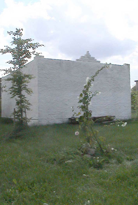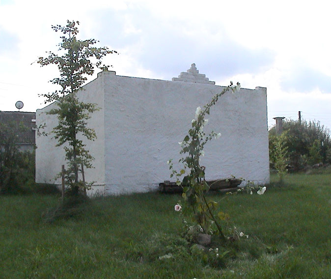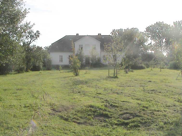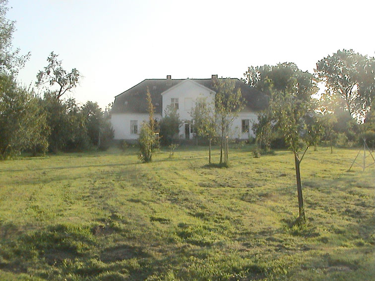 einen Pavillion am unteren Ende mit Blick aufs Haus von Osten und am Abend