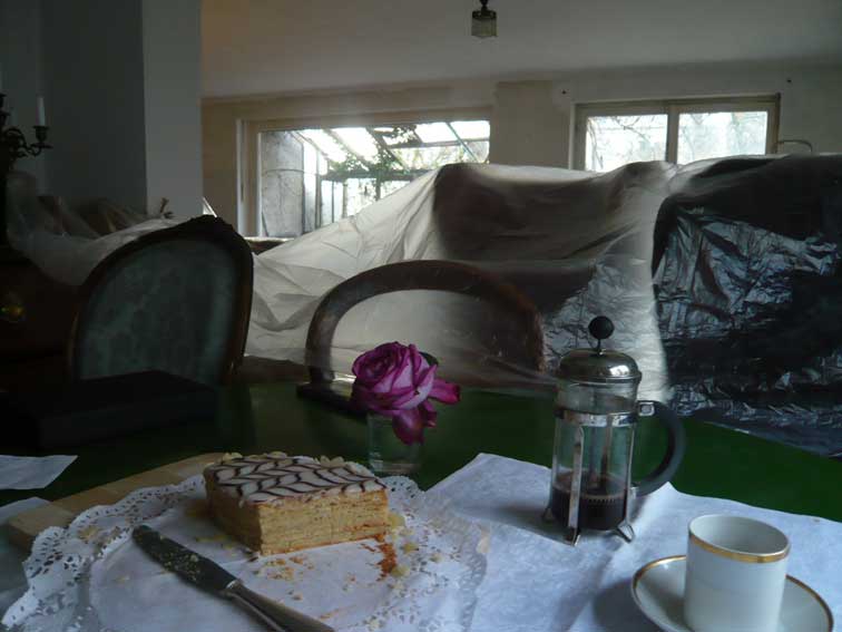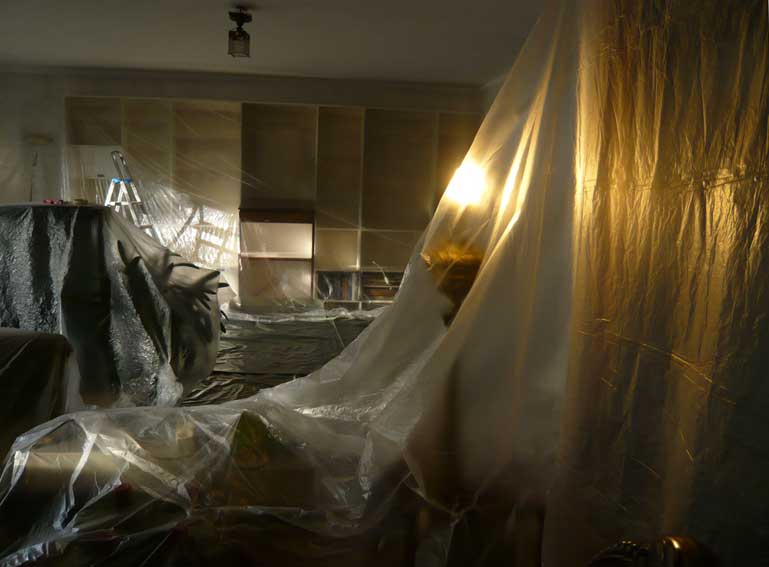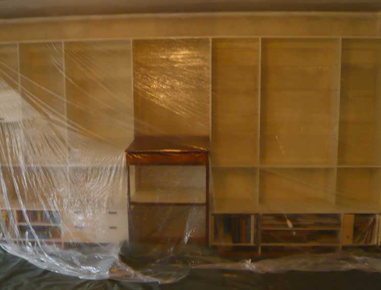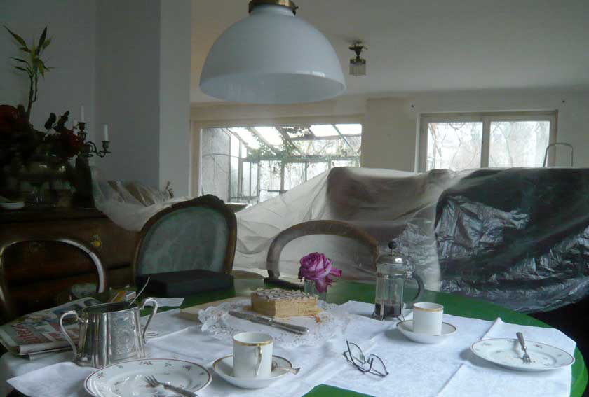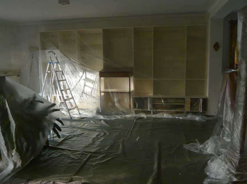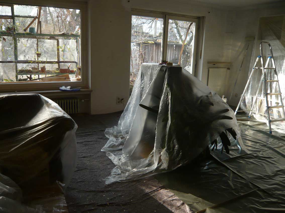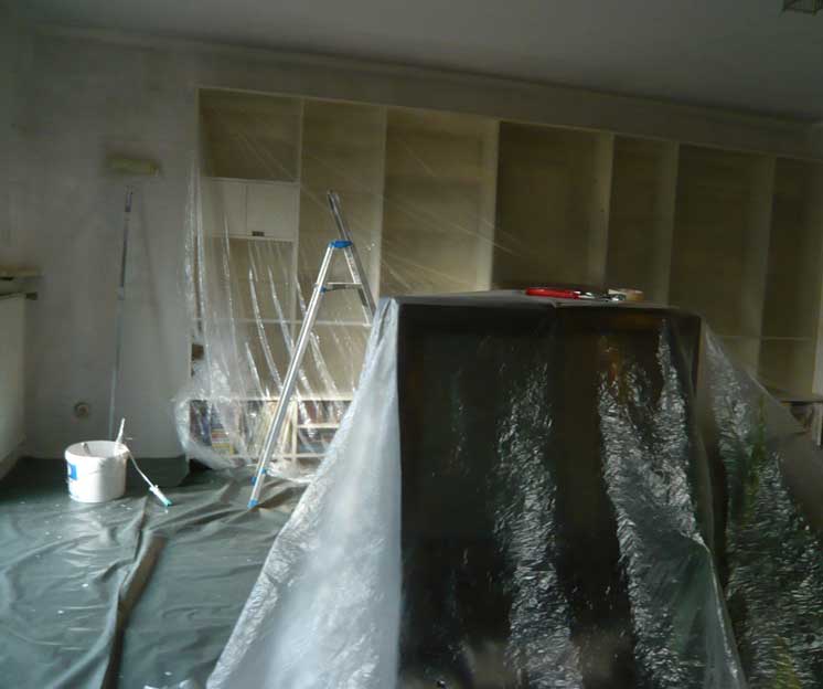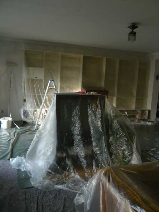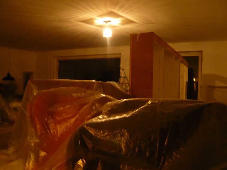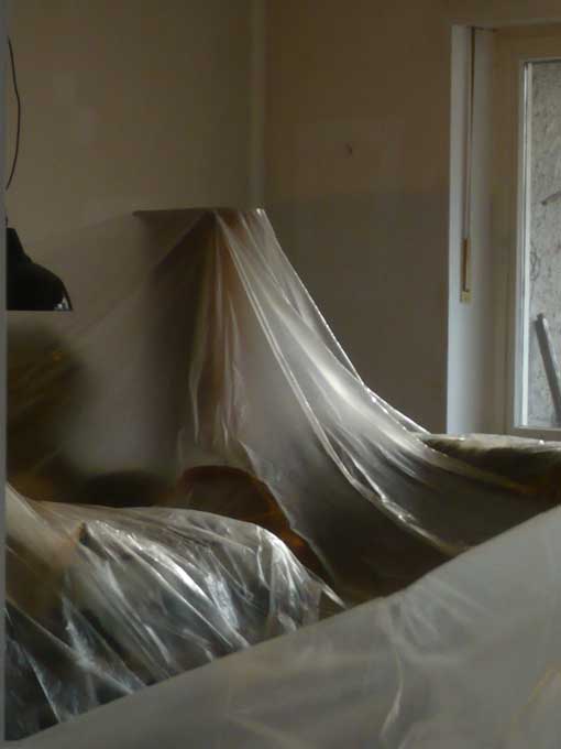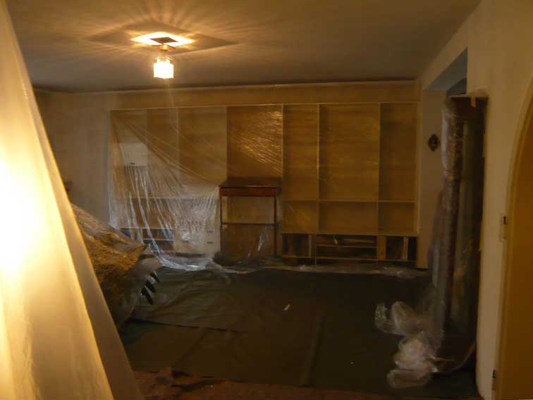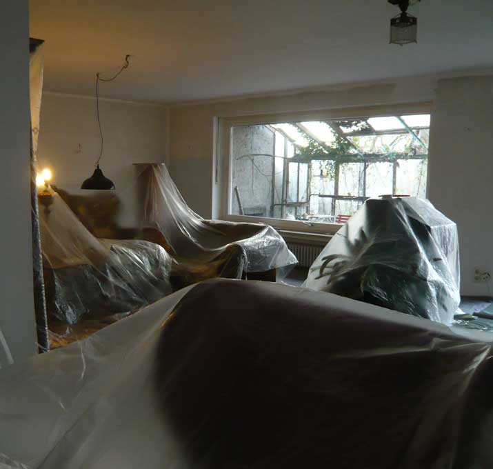Vier Monate nach der Wasserkatastrophe entstehen langsam wieder die Wände, Türen, Teppiche und Räume auch hier.