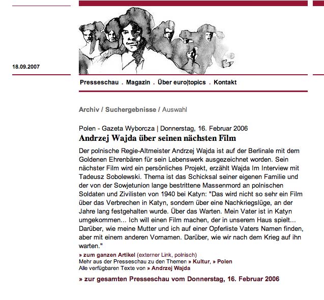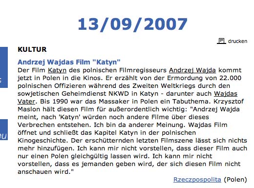 In Warschau Premiere des neuen Films von A.Wajda zu Katyn