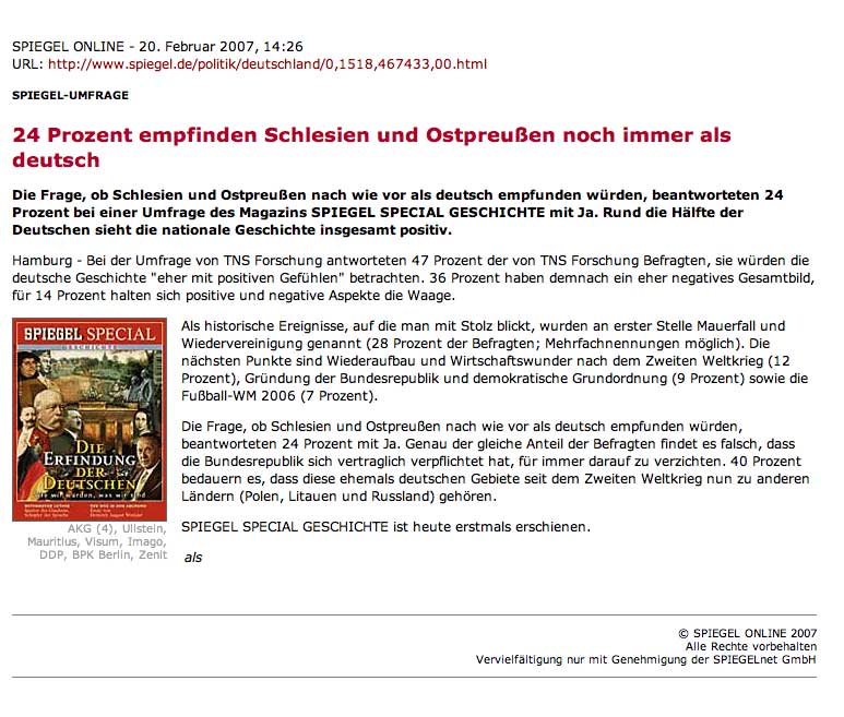 Die Frage, ob Schlesien und Ostpreußen nach wie vor als deutsch empfunden