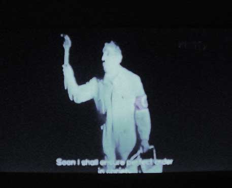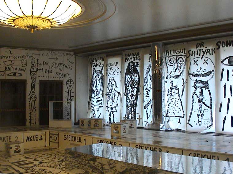 der Volksbühnenräume für die Hitler-Projektionen deutsch, englisch, französisch