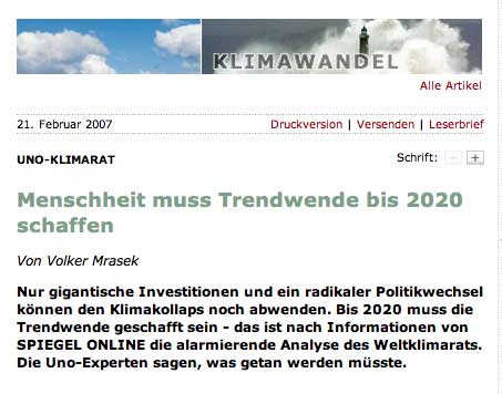 Erwärmung des Klimas gebe. Wenn die Entwicklung so weiter gehe, werde