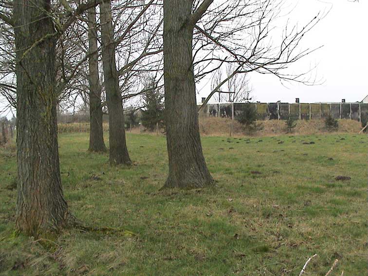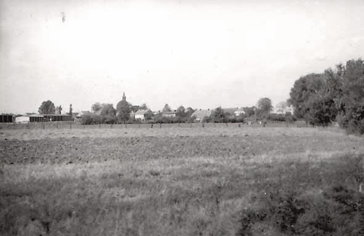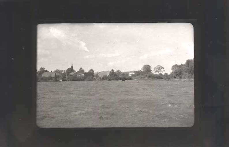 Dorf von süd-osten vor 1945, aus der Perspektive der heutigen Pappeln, die