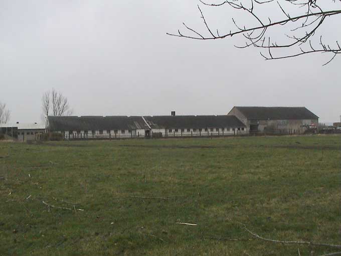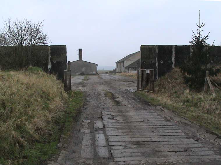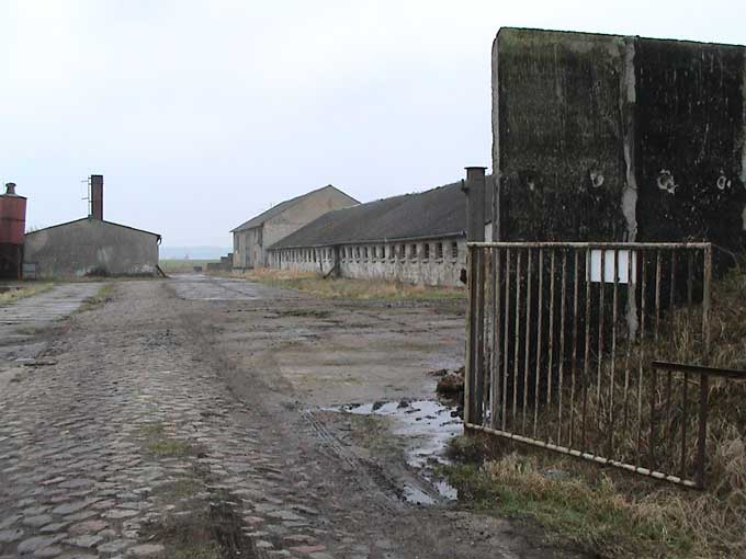 der einen Seite der Einfahrt die LPG Ruinen ohne Schutz der Bäume, auf der