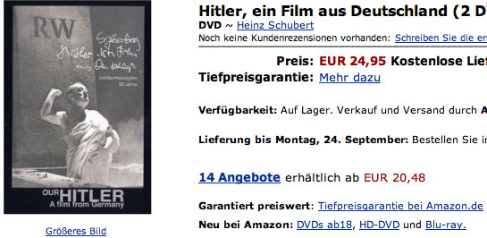 Nicht betroffen von Anfang an, ist die Ausgabe des Hitler-Film in der Gesamtausgabe