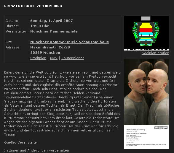 Sehe diese Gesichter. Das Licht. Die Konstellation der Personen zueinander, stelle mir den Text dazu vor, höre Oskar Werner und weiss vorbei. Daraus tönt nicht Kleist. Was dann. Wollen wir das - - -sein. Warum machen sie nicht ihre eigenen Texte- oder keine Mehr?