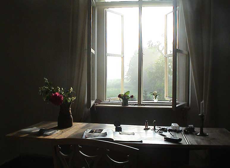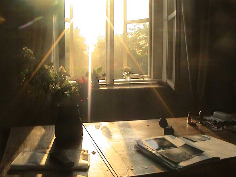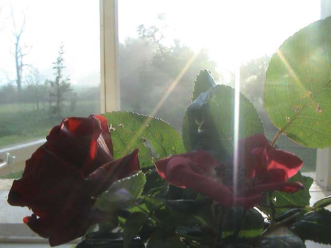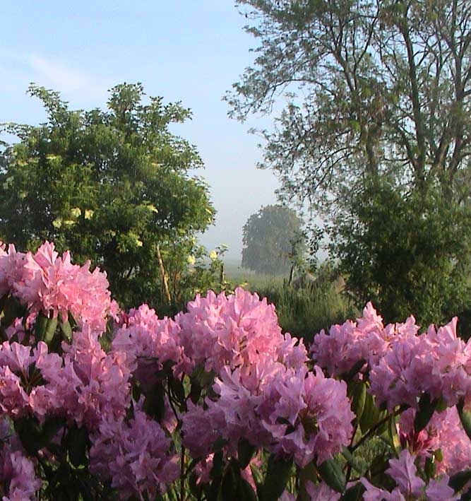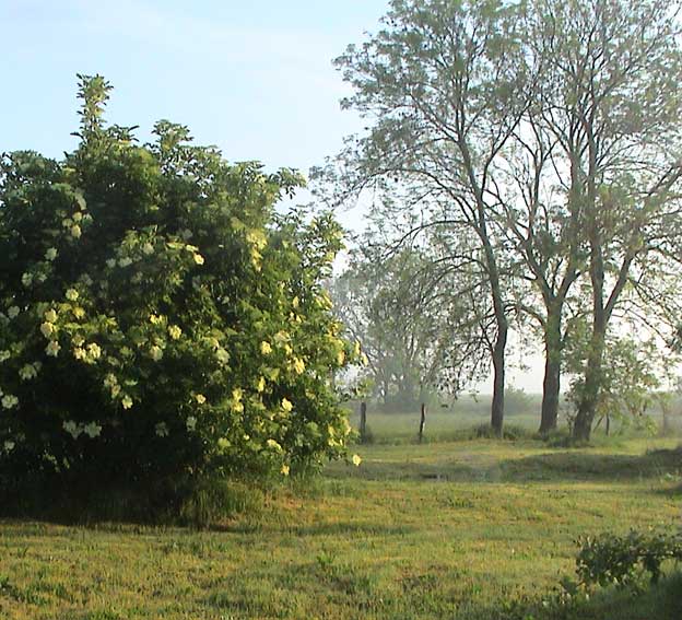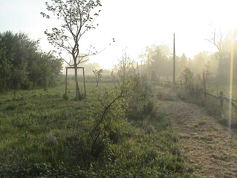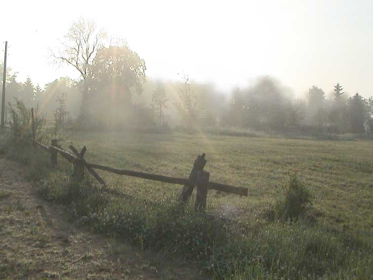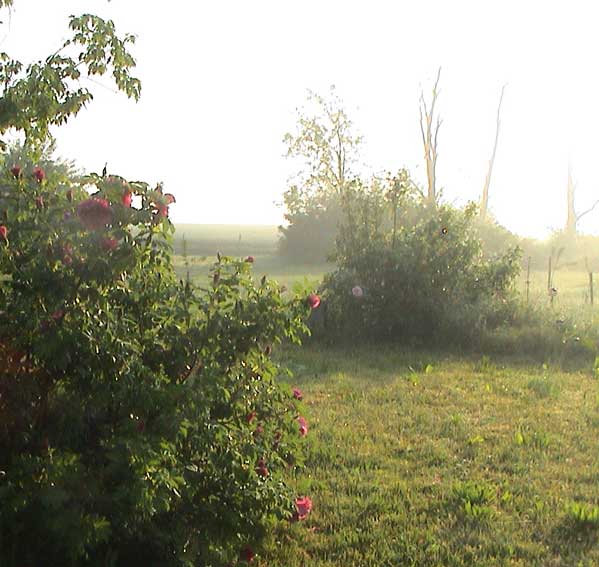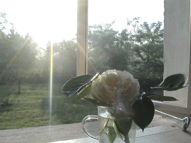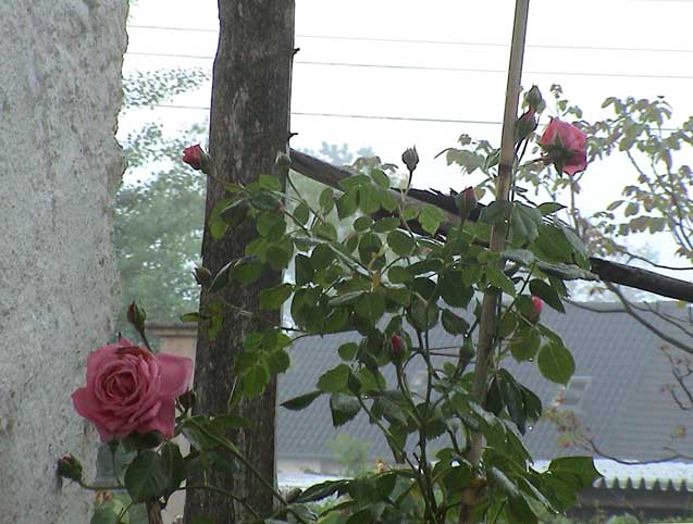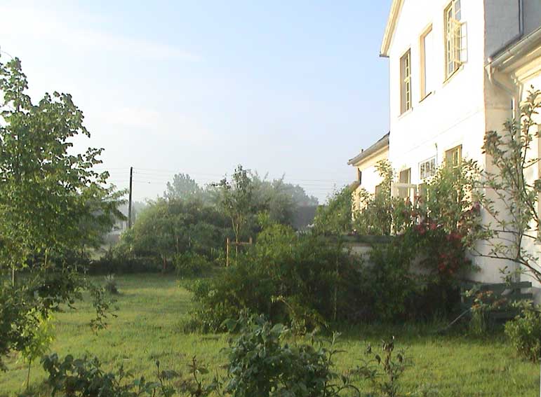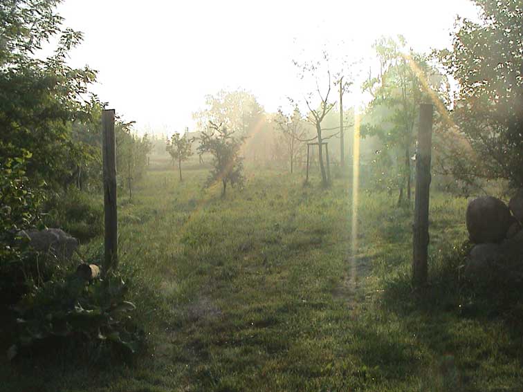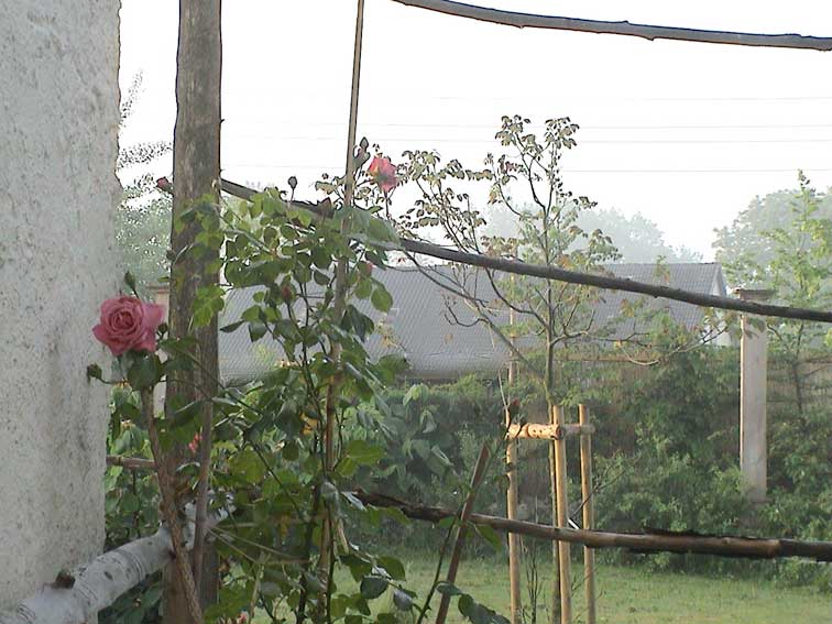 weiter. Rund ums Haus nach dem Regen erste Sonne des Morgens wieder über allem