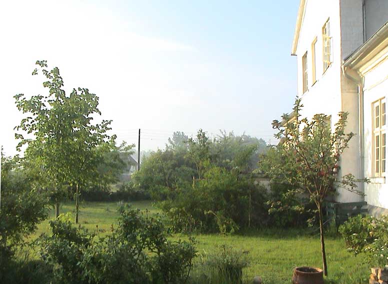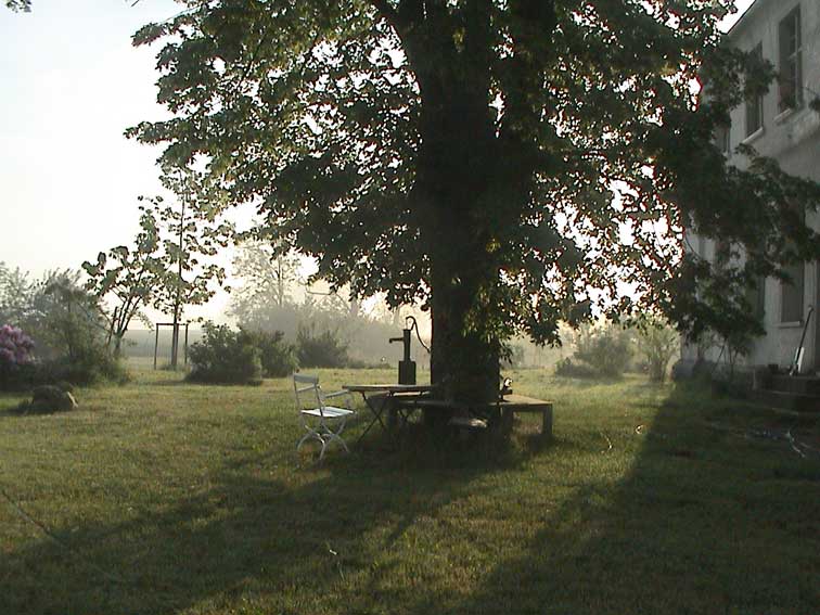 der rechte Baum noch stand, trotz allem.An der grauen Garage und der hinten