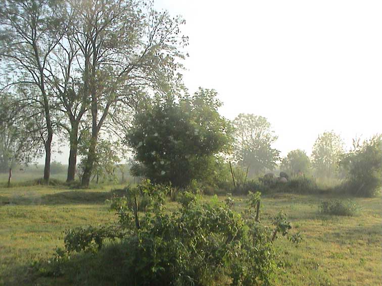 und Tiere allerorten. Von der Scheune noch das Dach. Leben.