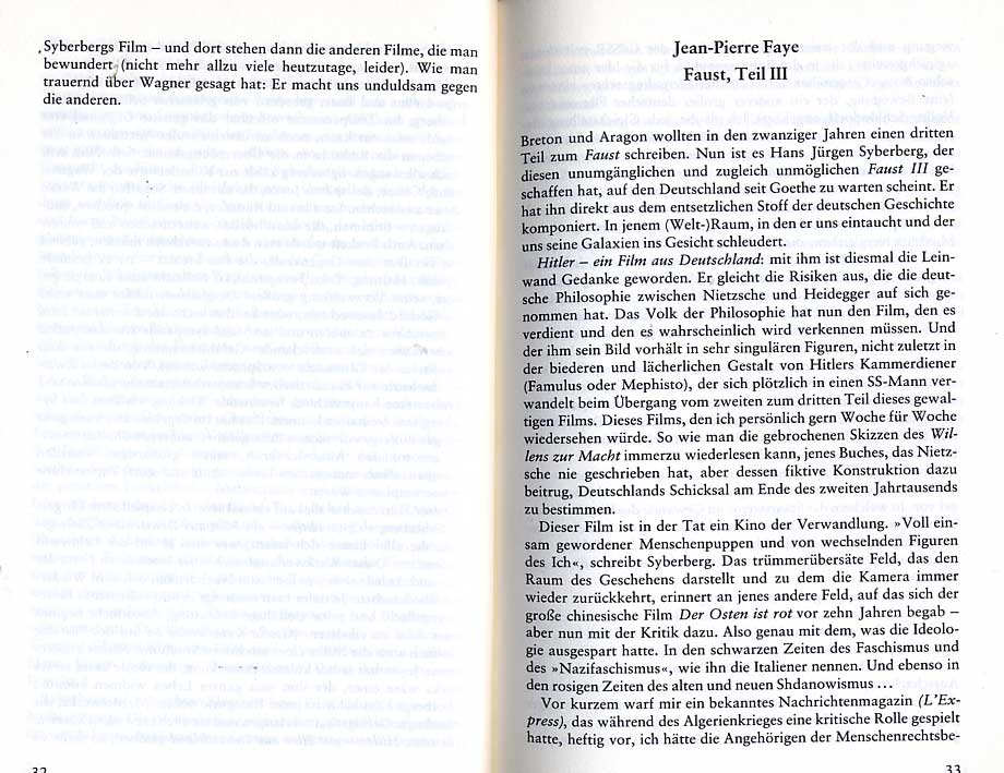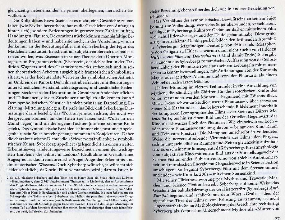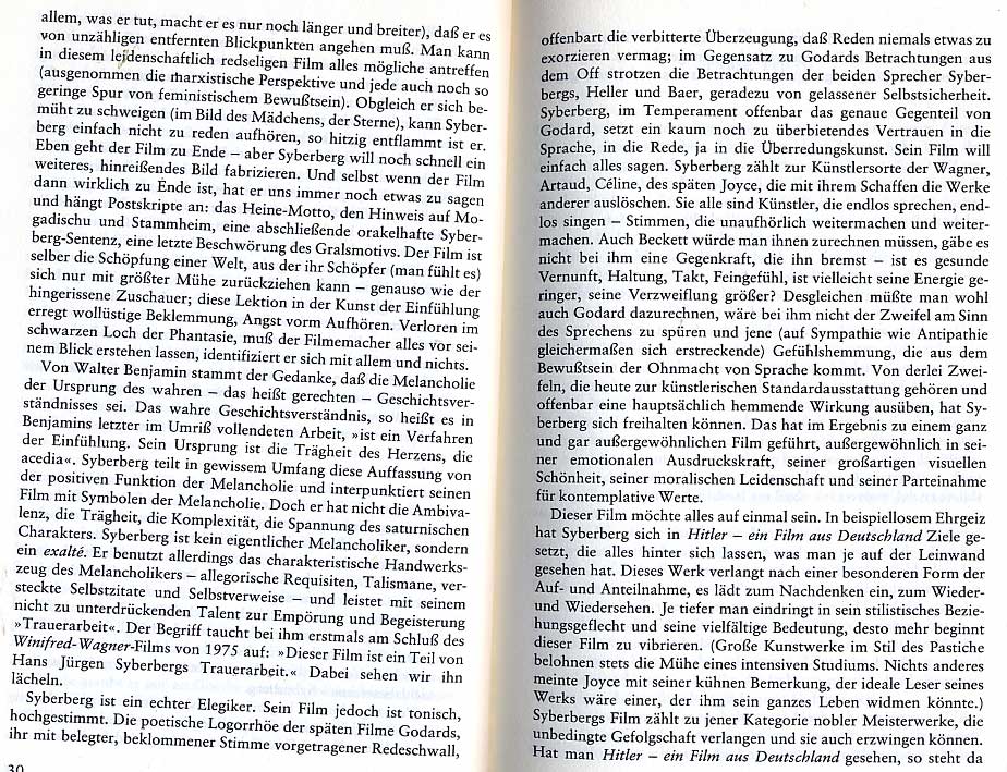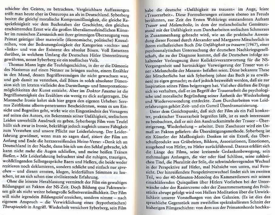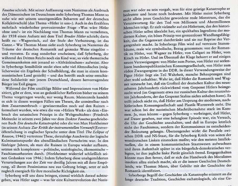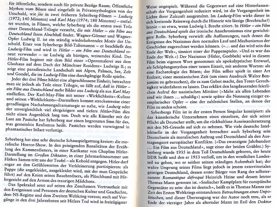 Forsetzung Susan Sontag Syberbergs Hitler von gestern (