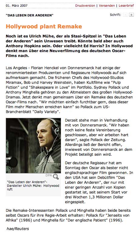 Die Juroren des Oscars waren besser. Sie priesen das speziell deutsche Problem, dieser Darsteller und des Darstellens und der Sprache.