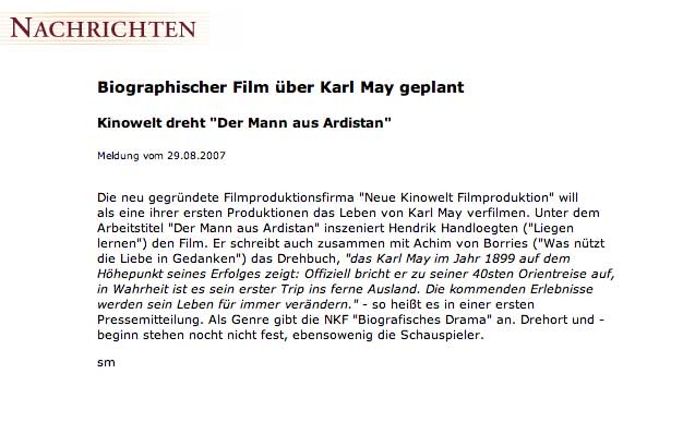 In Deutschland nach dem letzten Kriege machten sie Karl May Filme mit einem Amerikaner als Old Shatterhand und einem Franzosen als Winnetou und Artur Brauner als Produzenten. Die Texte in den Büchern des KM Verlages sind bearbeitet.