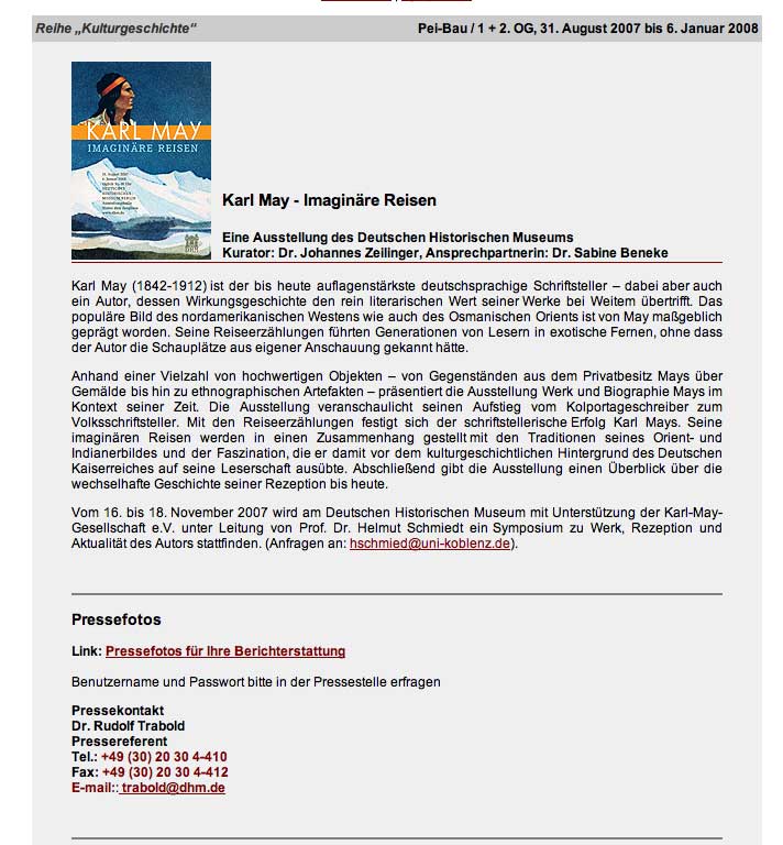 Karl May Ausstellung in Berlin Deutsches Historisches Museum. Google durchforstet.