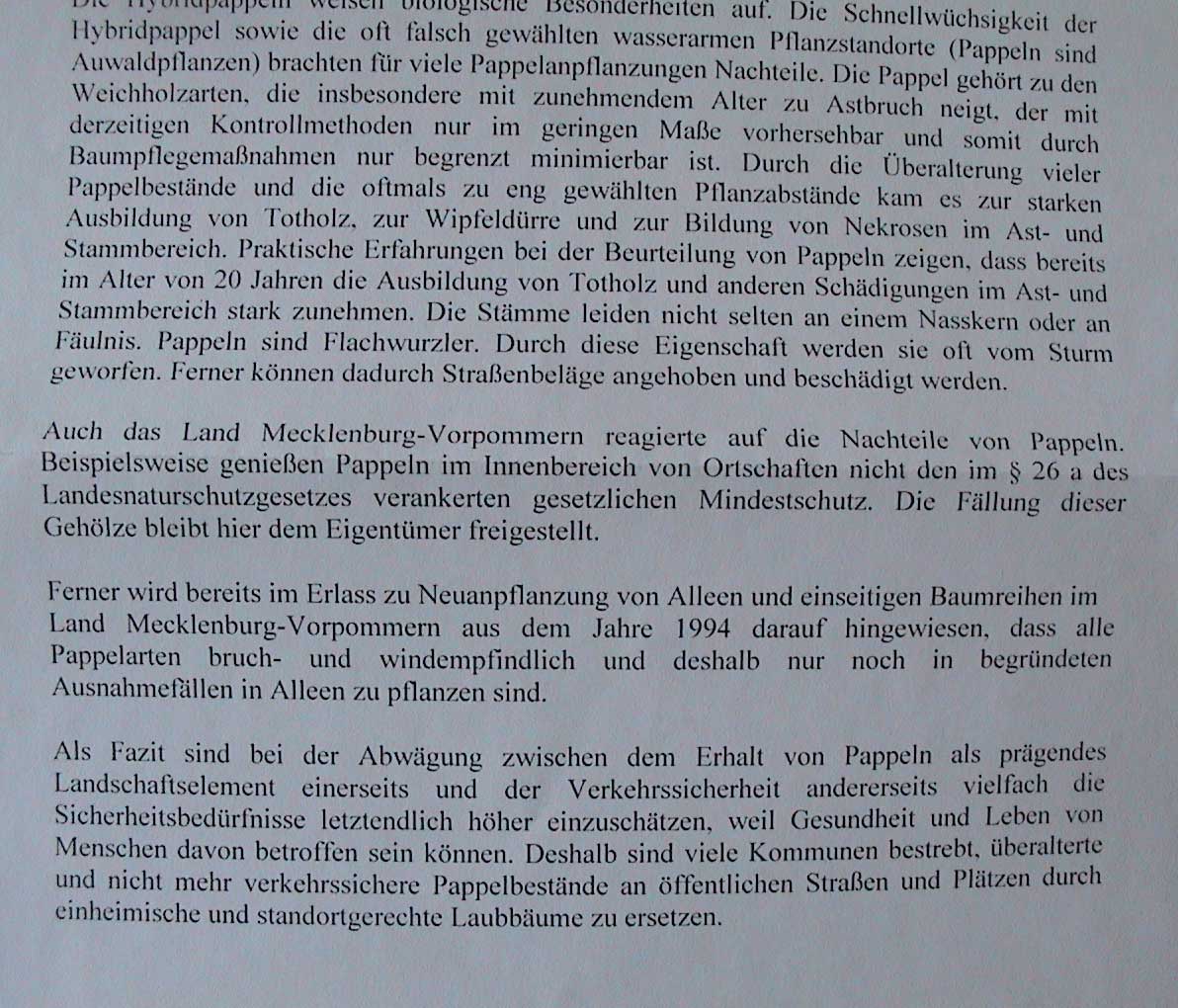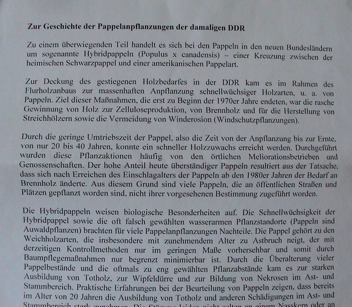 die Pappeln. 100 gingen verloren. Mit soviel Lügen. Die Gemeinde-nie gefragt,