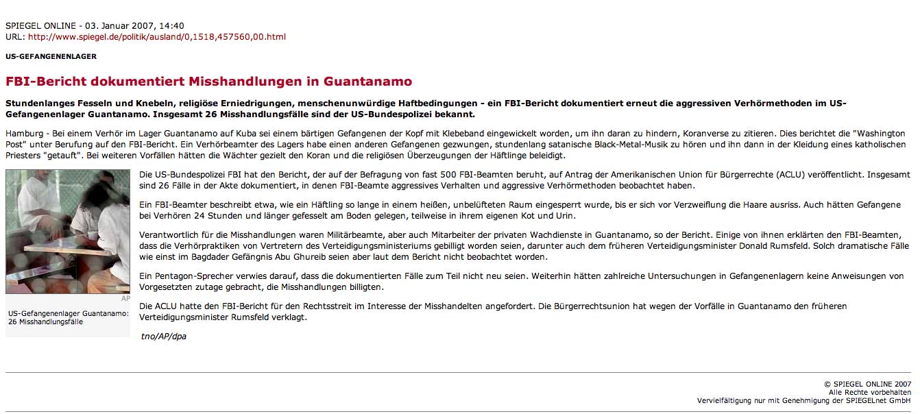 mistreatment, interrogations or interview techniques of GTMO yielded 26 positive