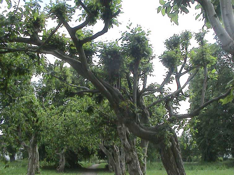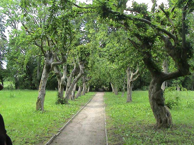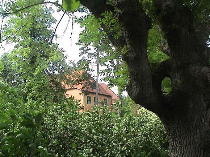 Hinten im ehemalen Park der Wallanlagen und Wassergräben mit alten Weiden