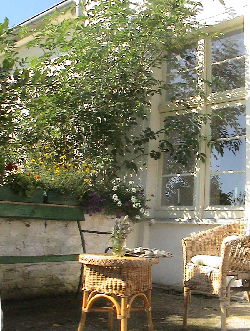 8mm Aufnahmen mit dem Vater und Sohn hier auf der halbschattigen Morgenterrasse