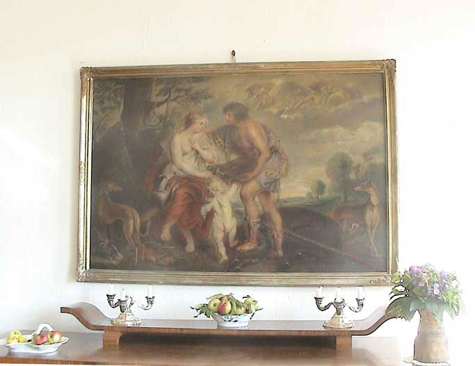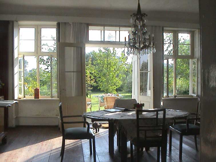 beiden Schmalseiten des grossen Esszimmers und Ausgangs zur Parkseite kann