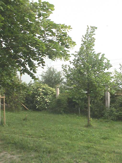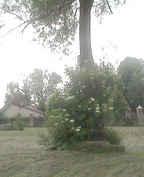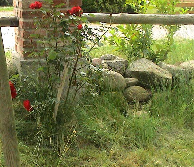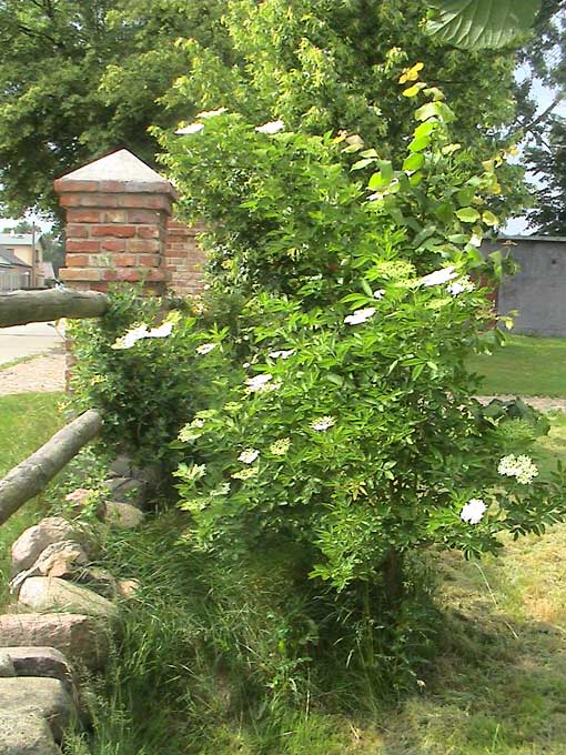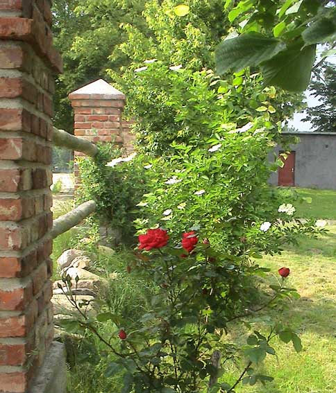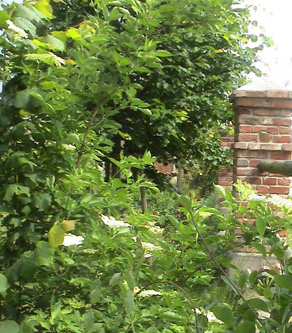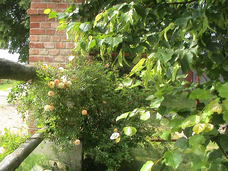 wieder diese Pfeiler und Linden mit Rosen zu Füssen mit Hollunder als ob es