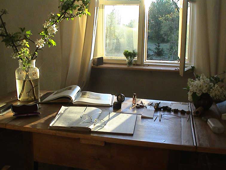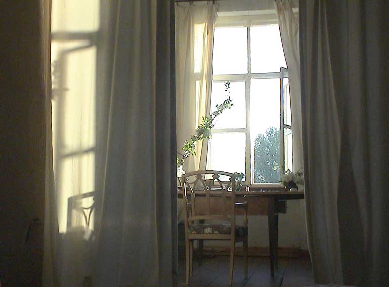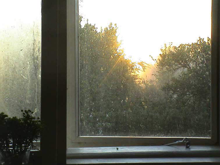 aufgenommn, -6 Uhr bei Sonnenaufgang in N.- oder das fenster vom Bett ausgesehen,