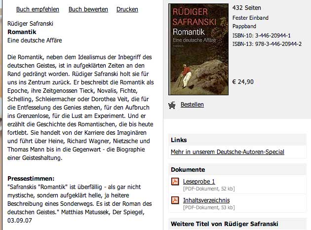 Ob das Buch über Romantik, nun gerade herausgekommen, auch diese Passage
