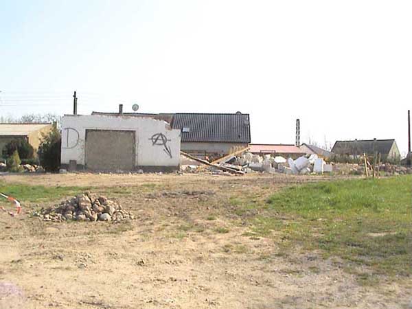 schon ist der Baum links der Garage auch weg, die Mauer rechts und