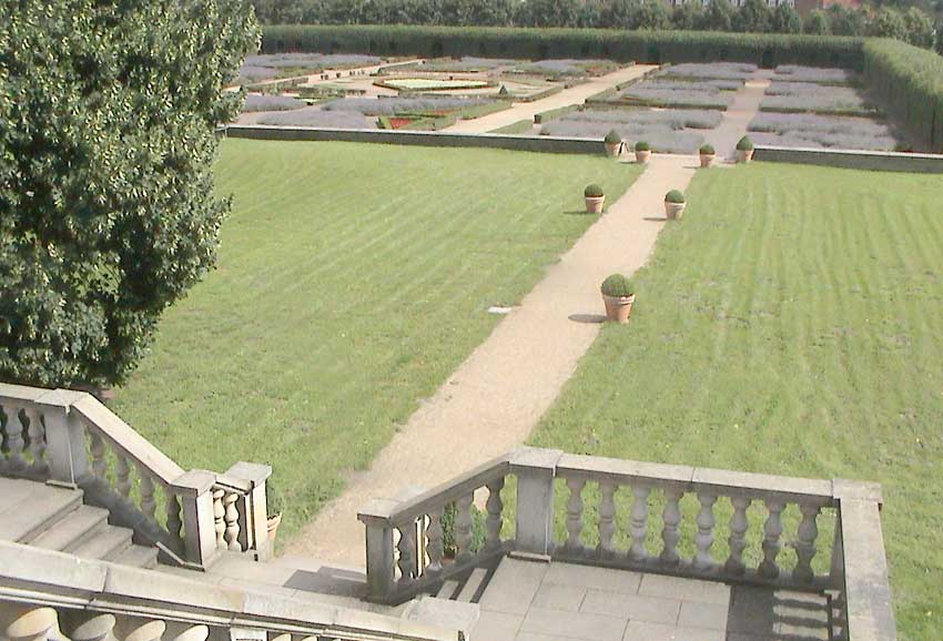 hergestellt. Unten Lavendel und Hainbuchen Lauben.Das Paterre oben fehlt noch.