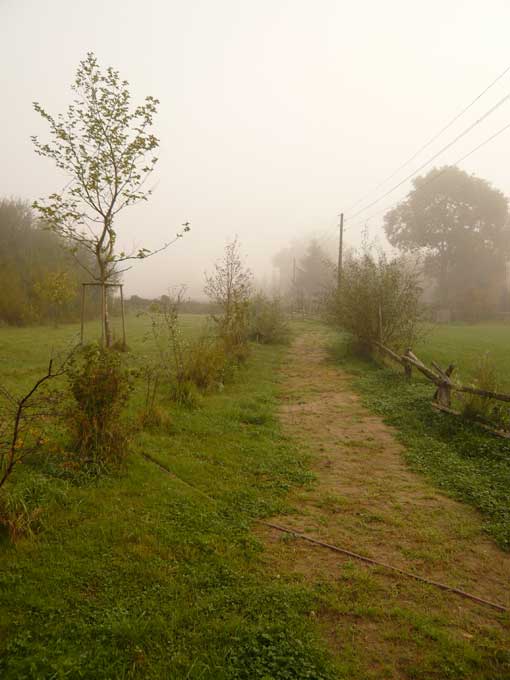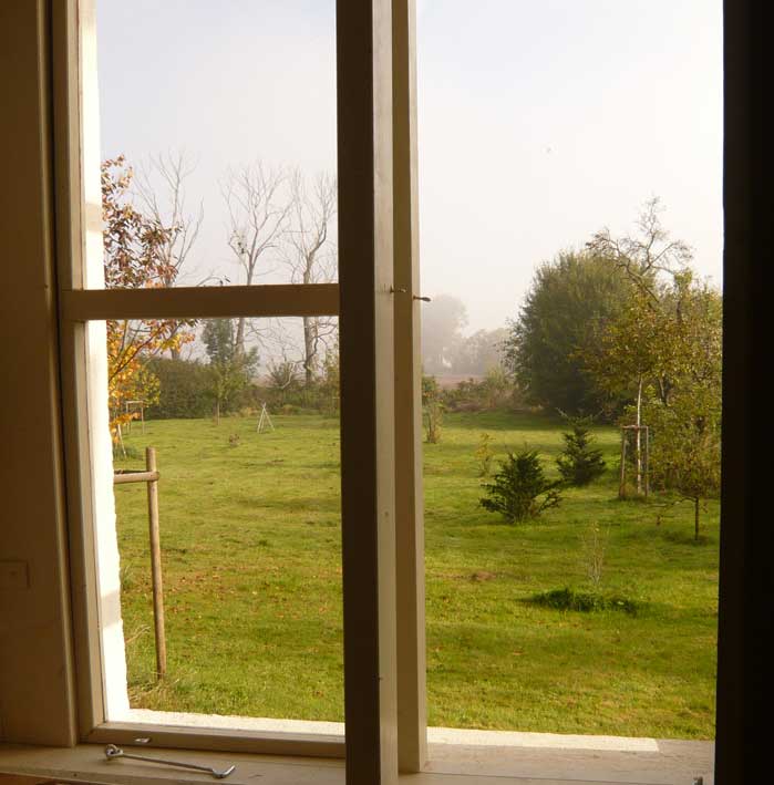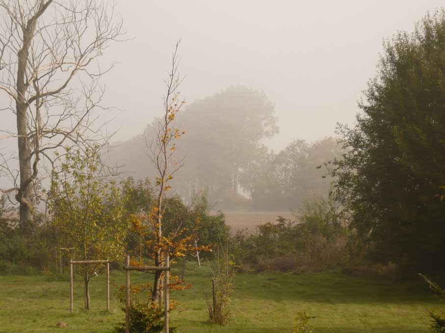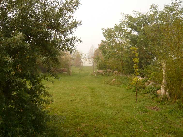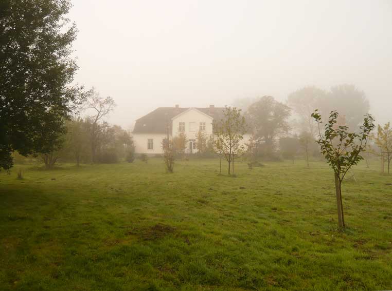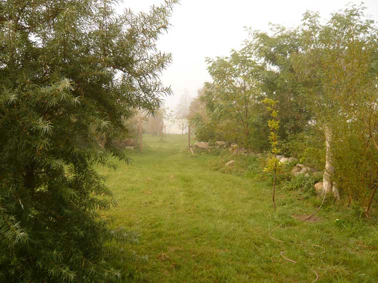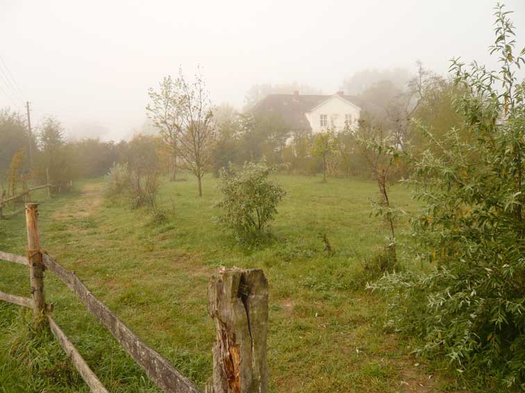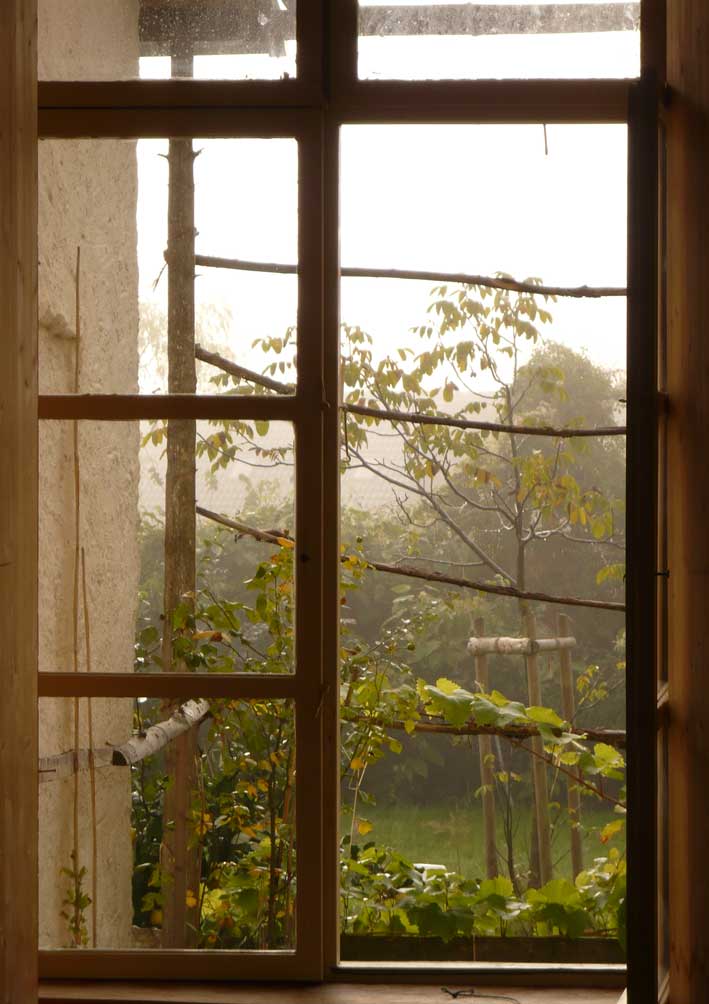 Blicken aus den Fenstern zum Gang durch die nebelfeuchten Gräser, so oft