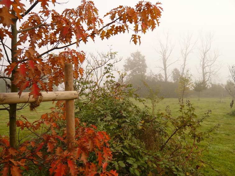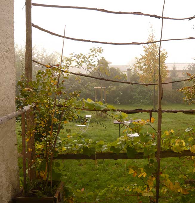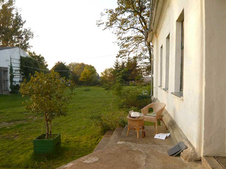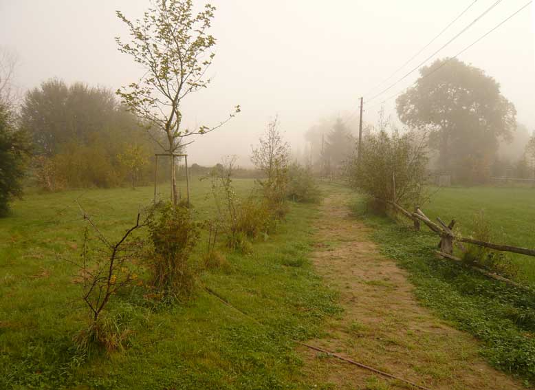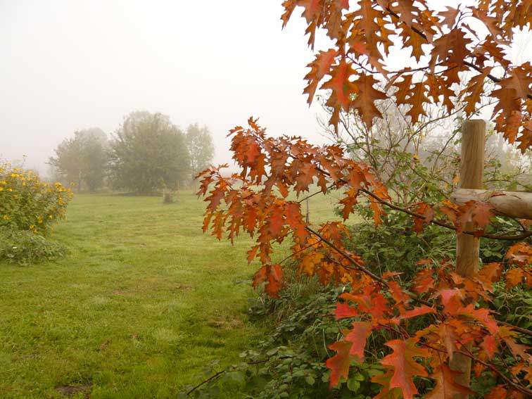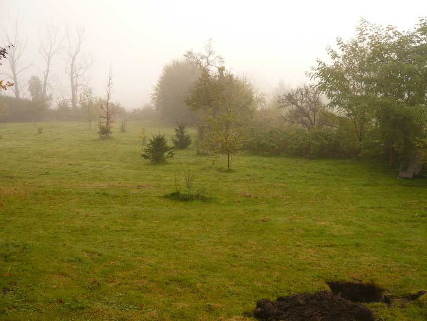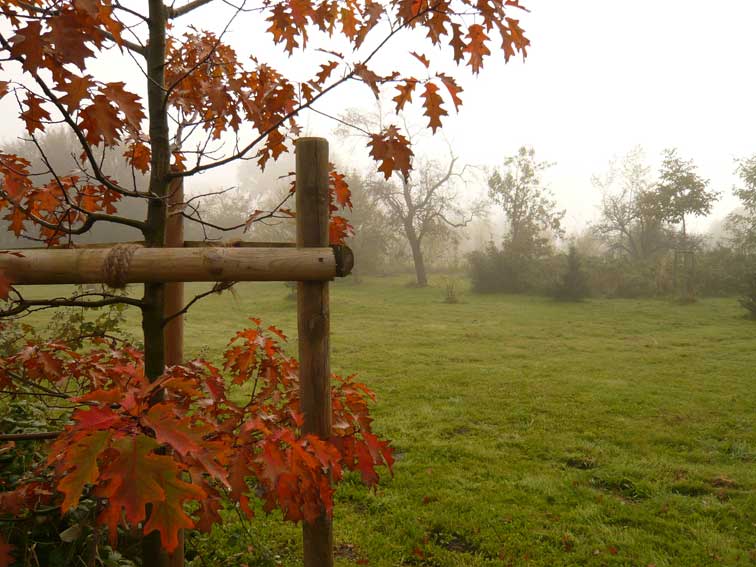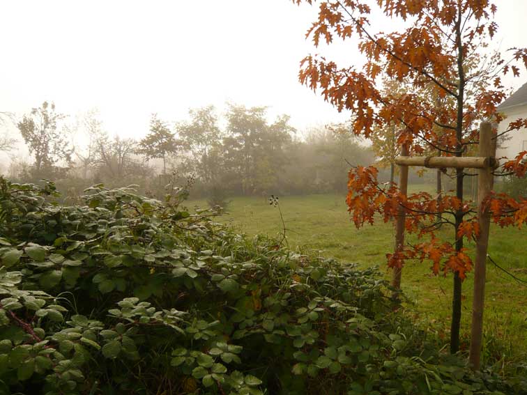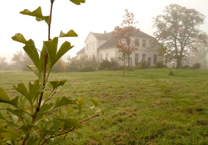 Blicken aus den Fenstern zum Gang durch die nebelfeuchten Gräser, so oft