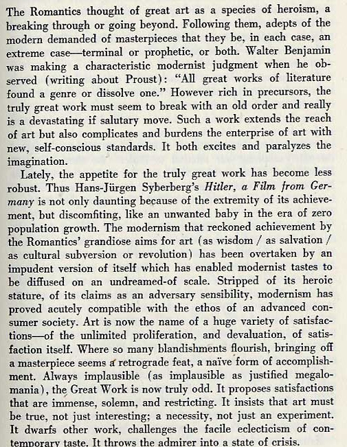 fing Susan Sontag ihren Text zum Hitlerfiilm an, über die Romantik.