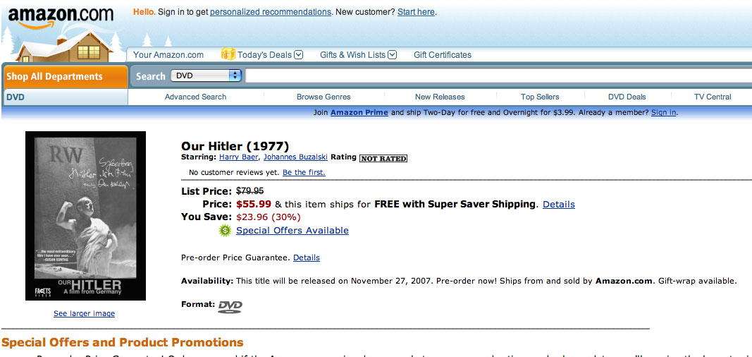 to you enquiring as to whether the film Hitler, ein Film aus Deutschland