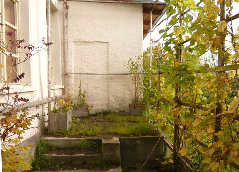 schufen Alles, was da war, umschliessende Mauer und Kutschenremiesen, Garagen
