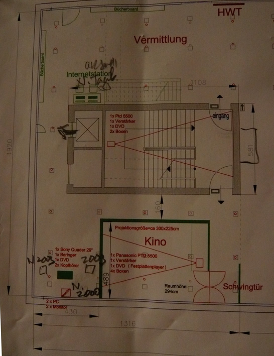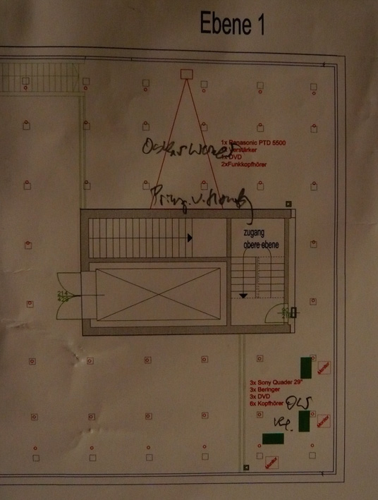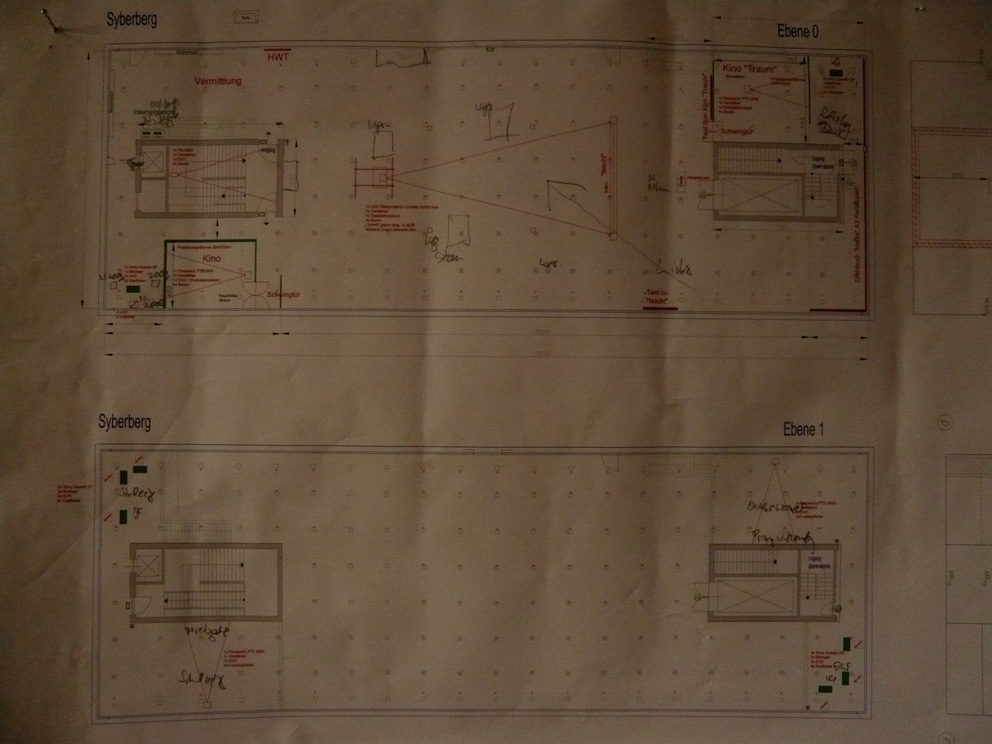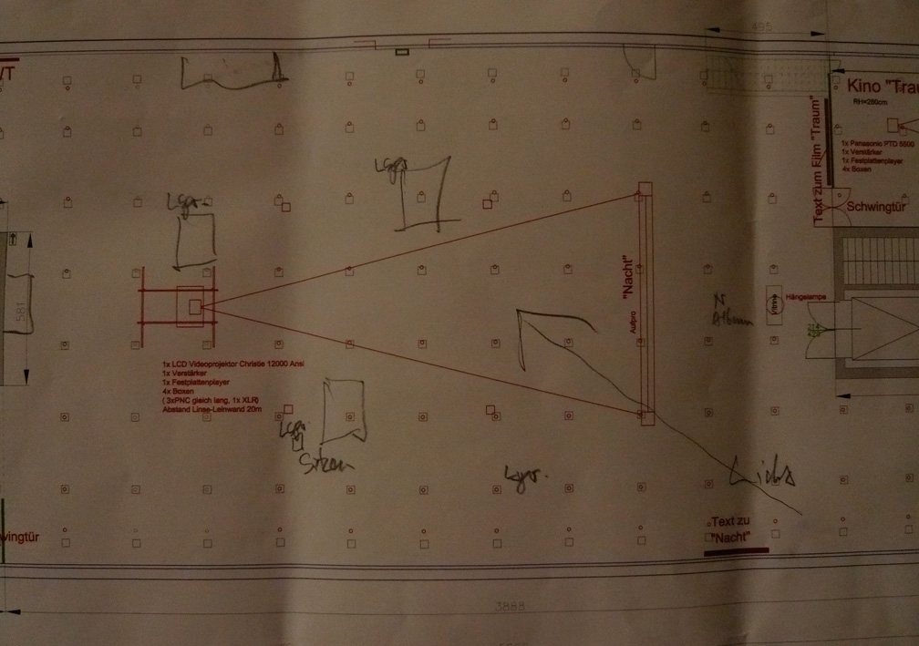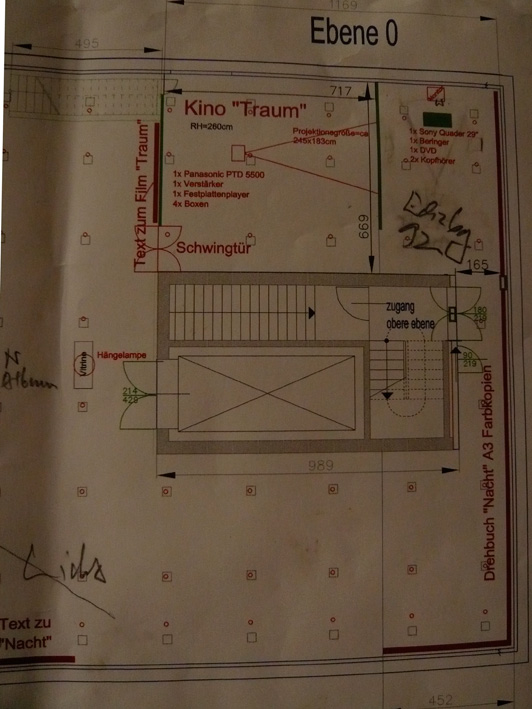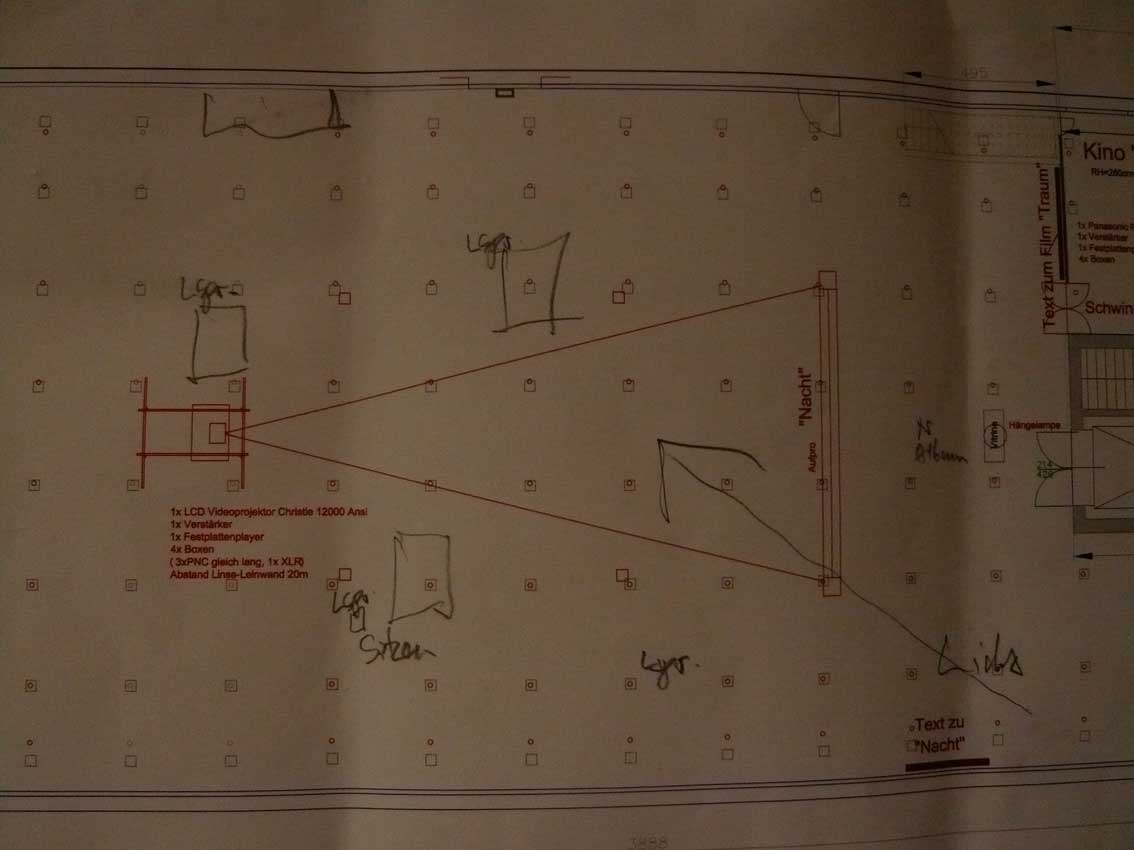 Und wir werden danach in dieser geschundenen Scheune, Halle aus LPG Zeiten, versuchen diese Nacht fernab weiter zu projizieren, Tag und Nacht. in abgeschlossenem Raum, vor sich, tönend und zu übertragen, mit live Kameras in alle Welt. Und manchmal auch die anderen Botschaften, mit Hilfe der alten Meister, so auch die Räume des Berliner Schlosses, dass sie nun zweckentfremdet und ohne Inhalt des Gehäuses als Fassaden-fake wieder errichten wollen. Raum für Raum aus alten Abbildern hier in abgelegener Scheune, im Norden des ehemaligen Preussen, wo selbst der Mist nicht mehr ist, und wenn, als Jauche stinkend aus Holland importiert.